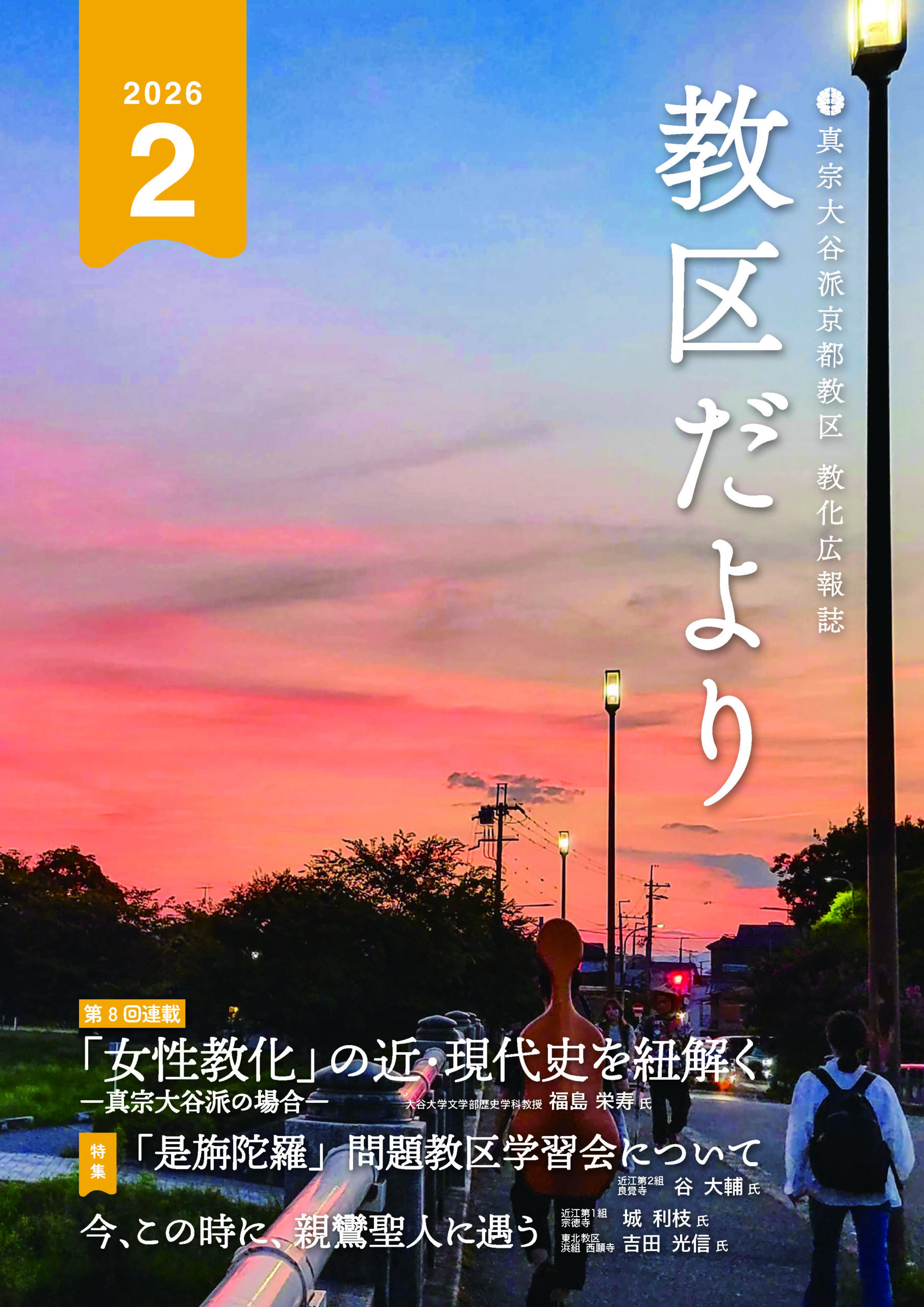 教区だより 429号・連載 第8回「女性教化」の近・現代史を紐解く ―真宗大谷派の場合― 福島 栄寿 氏・特集 「是旃陀羅」問題教区学習会について 谷大輔 氏・今、この時に、親鸞聖人に遇う …