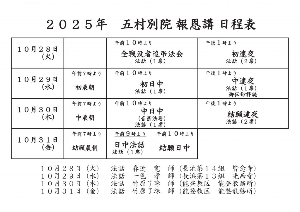 10月29日(水) 7:00~ 初晨朝